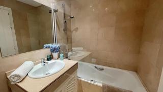 Het appartement is voorzien van 2 slaapkamers, 2 badkamers, beddengoed, handdoeken, een flatscreen-tv, een eethoek, een volledig uitgeruste keuken, en een terras met uitzicht op de zee.