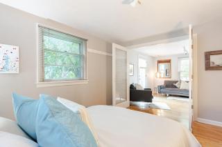 De vakantiewoning heeft 1 slaapkamer, 1 badkamer, beddengoed, handdoeken, een flatscreen-tv, een eethoek, een volledig uitgeruste keuken, en een patio met uitzicht op de tuin.