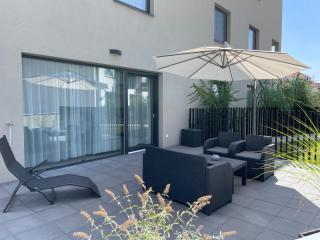 Het appartement biedt een terras, een zithoek, flatscreen-tv met kabelzenders, een volledig uitgeruste keuken met een koelkast en een vaatwasser, en een eigen badkamer met douche en gratis toiletartikelen. Er is ook een oven, een magnetron, een kookplaat en een waterkoker.