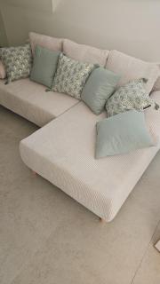 Het appartement heeft 1 slaapkamer, een flatscreen-tv en een volledig uitgeruste keuken met een koelkast, een vaatwasser, een wasmachine, een oven en een magnetron.