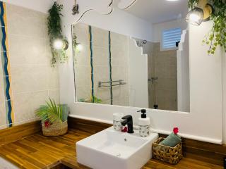 TI KAZ DOUDOU - village de vacances bord de mer is gelegen in Sainte-Anne, dicht bij Plage de Gros Sable, en biedt accommodatie met buitenzwembad, een auto, een privéstrand, een restaurant en een bar. Het appartement beschikt over gratis privéparkeren en je kunt er in de omgeving wandelen, snorkelen en tafeltennissen.